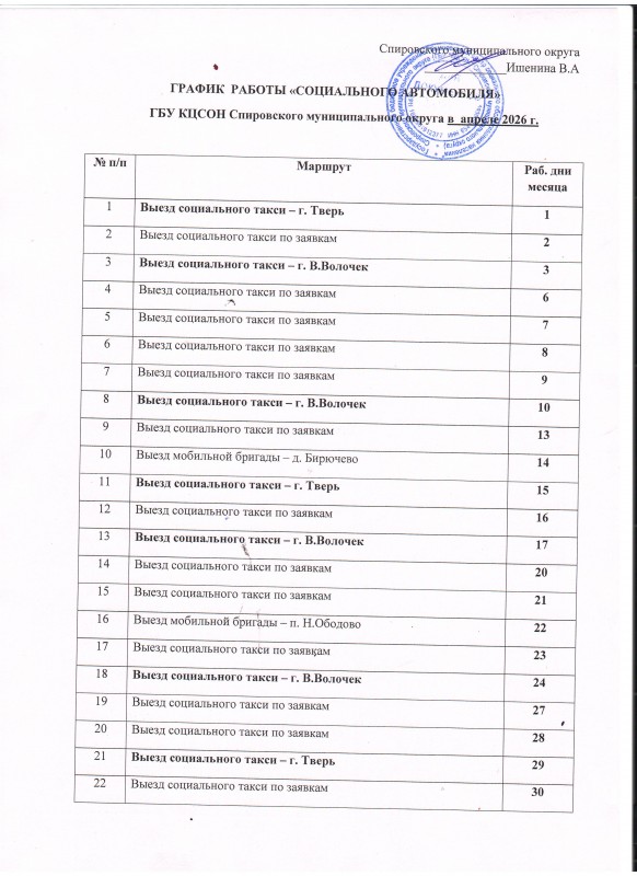 Раписание выездов социального автомобиля